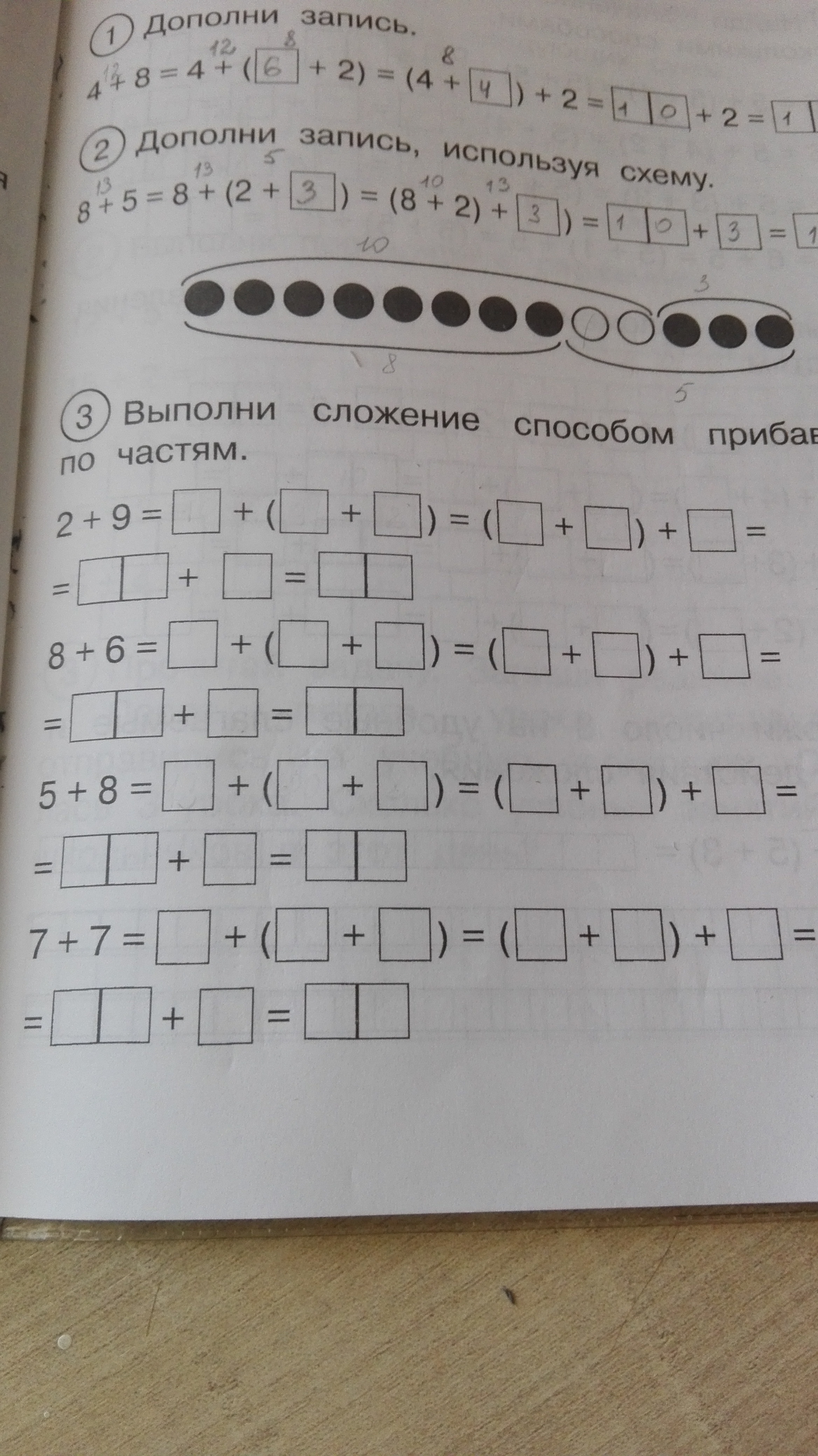 5+8=2+(1+2)=(5+ 3)+3=11+2=13