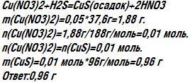 Через раствор нитрата меди(II) массой 37,6 г и массовой долей 5% пропустили избыток сероводорода. Вычислите массу осадка, образовавшегося в результате реакции.