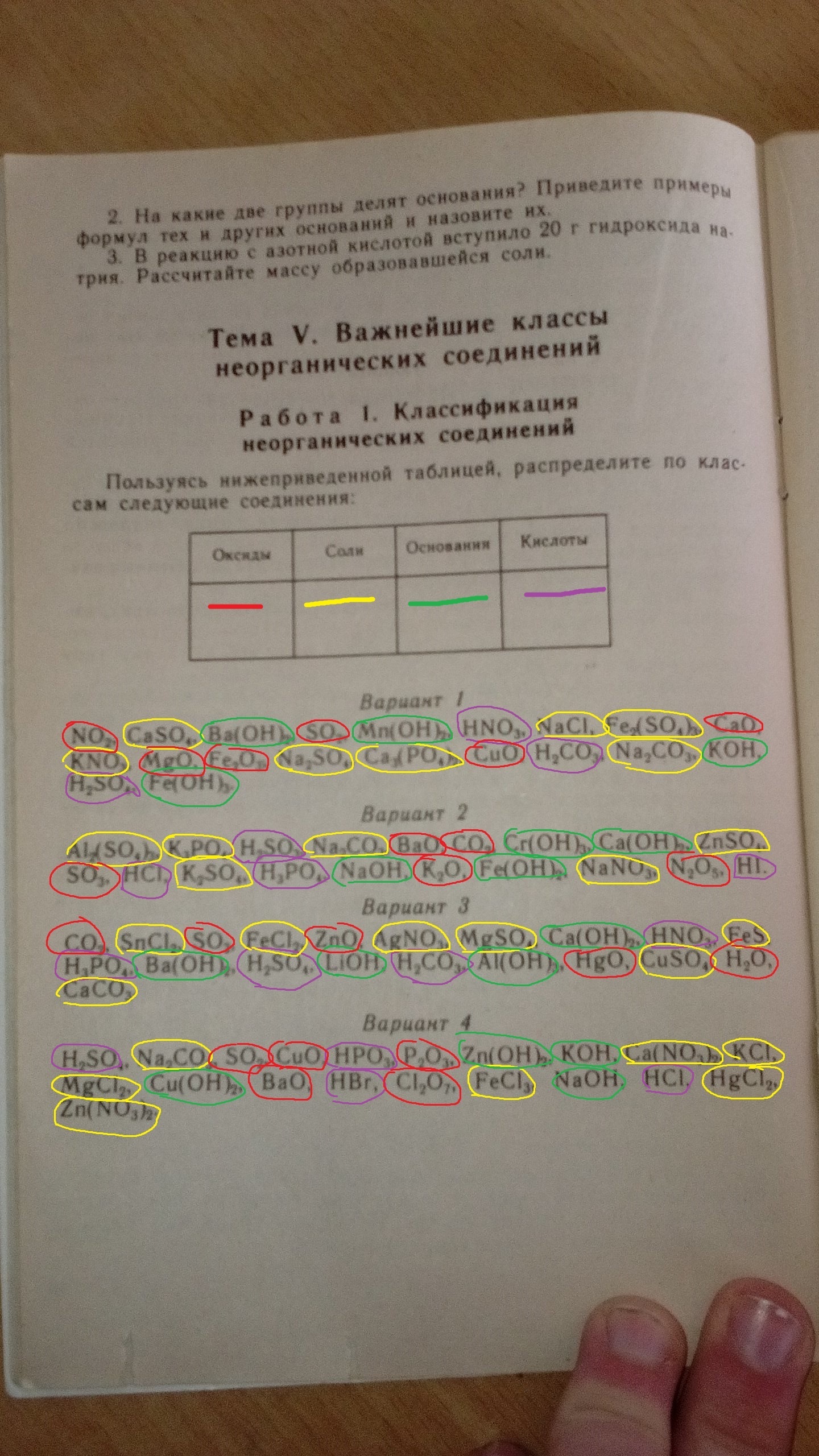 Основания: Cr(OH)3, Ca(OH)2, NaOH, Fe(OH)2