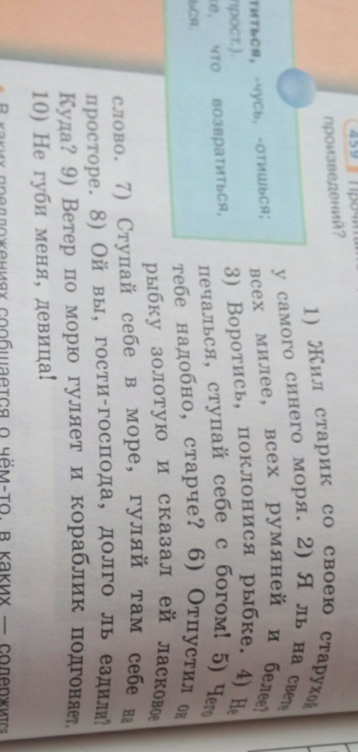 Старик жил.Он отпустил и сказал.Гости-господа ездили.Ветер гуляет и подгоняет.