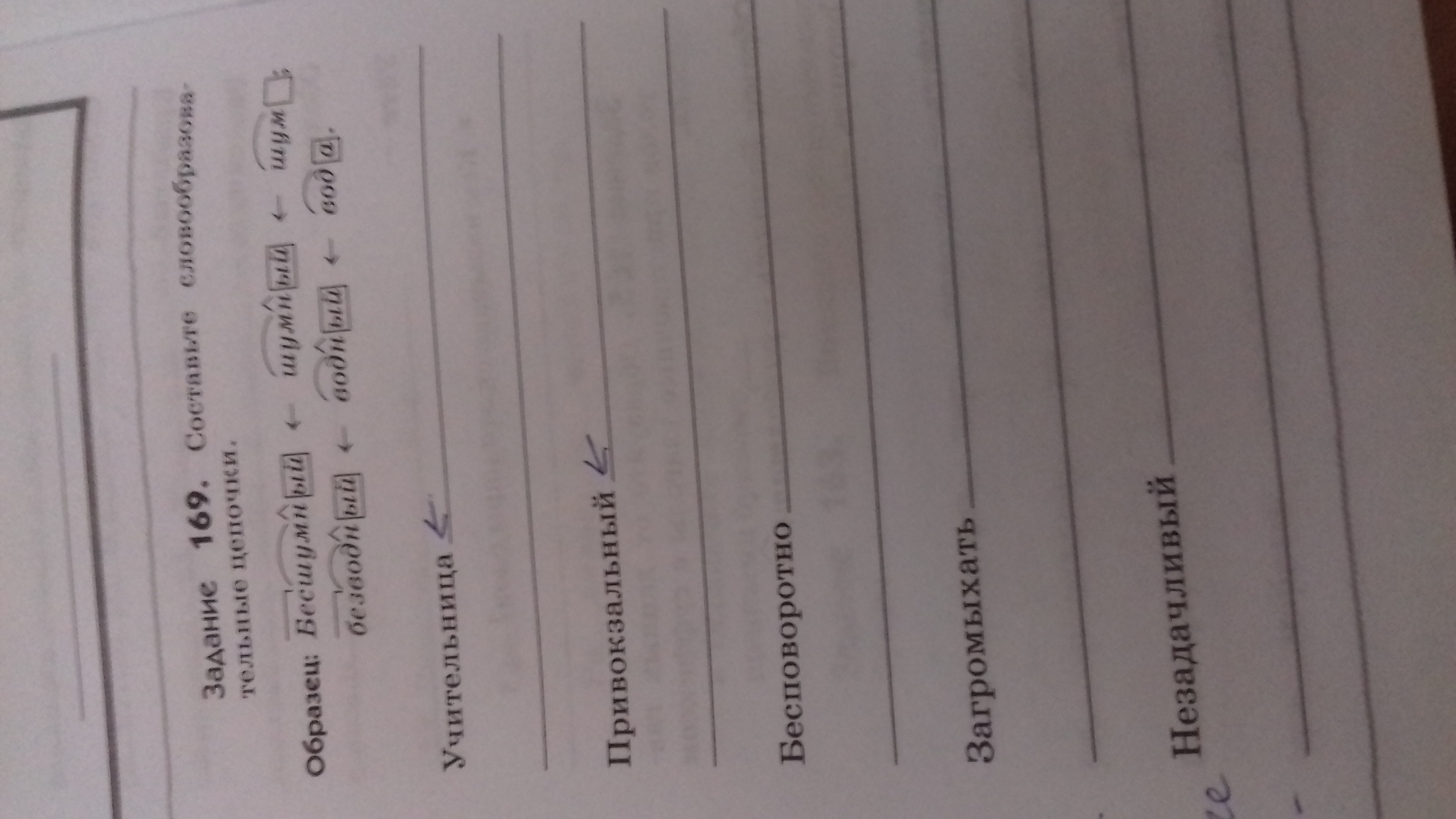 Составьте словообразовательные цепочки со словами учительница,привокзальный,бесповоротно,загромыхать,незадачливый