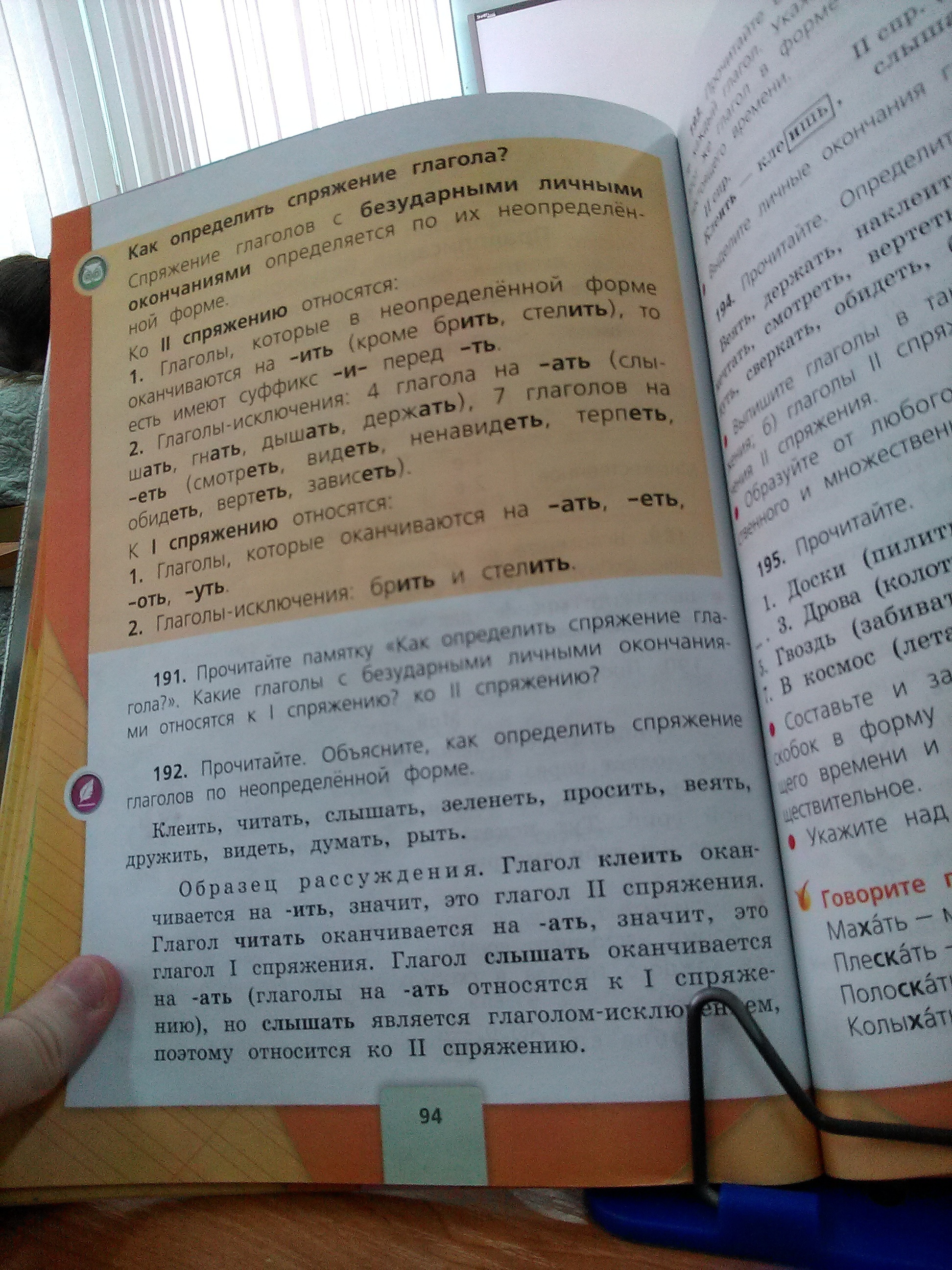 Если глаголы оканчиваются на -ить кроме глаголов брить стелить это глагол 2 спряжения, ещё ко 2 спряжению относятся 4 глагола на -ать гнать дышать держать слышать и 7 глаголов на -еть видеть смотреть вертеть ненавидеть обидеть терпеть зависеть,а к 1 спряжению относятся все остальные глаголы+2 глагола на -ить (брить стелить).