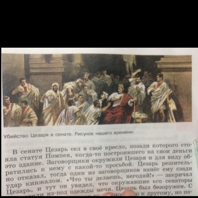 Опишите рисунок "Убийство Цезаря в сенате". Кем были заговорщики? Чью власть они хотели восстановить?