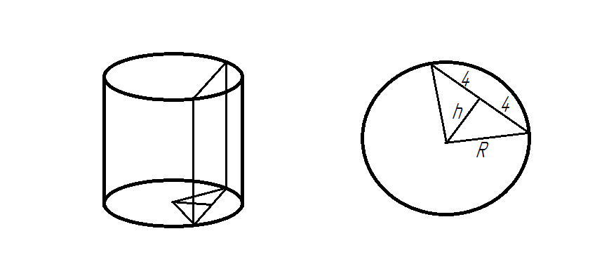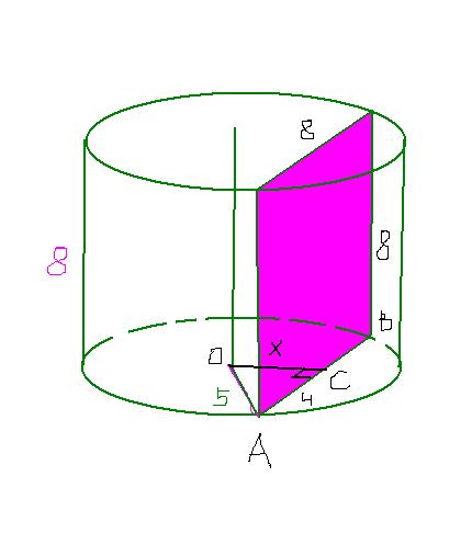 Высота прямого цилиндра 8м, радиус основания 5м.Цилиндр пересечен плоскостью, параллельной его оси.В сечении получился квадрат.Найдите расстояние от этого сечения до оси цилиндра.