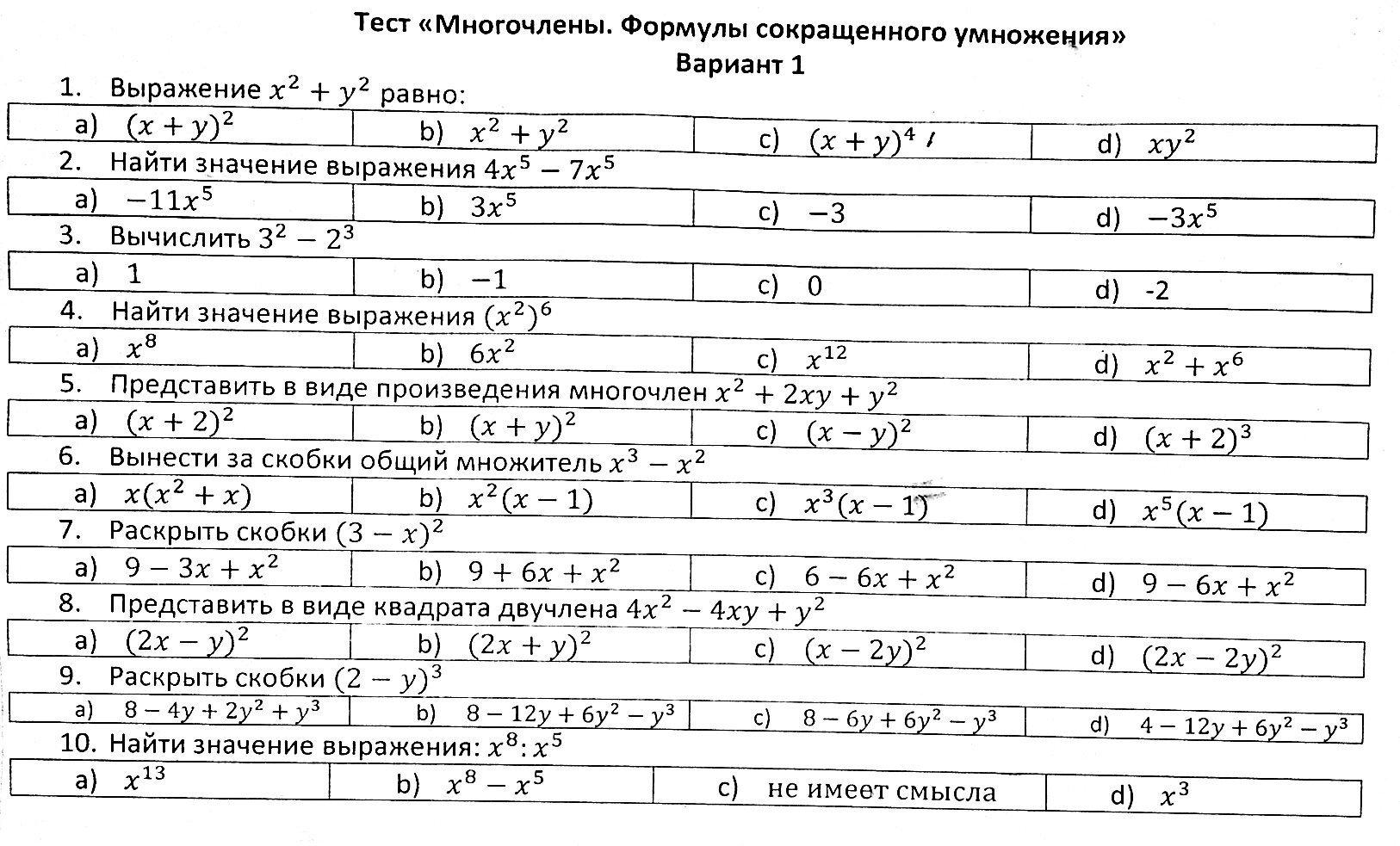 7)(3-x)'2= 9 - 6x + x'2 d)