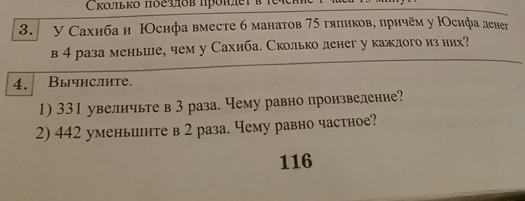 Ответ: у Юсифа 1манат 35 гяпиков,а у Сахиба 5 манатов 40 гяпиков