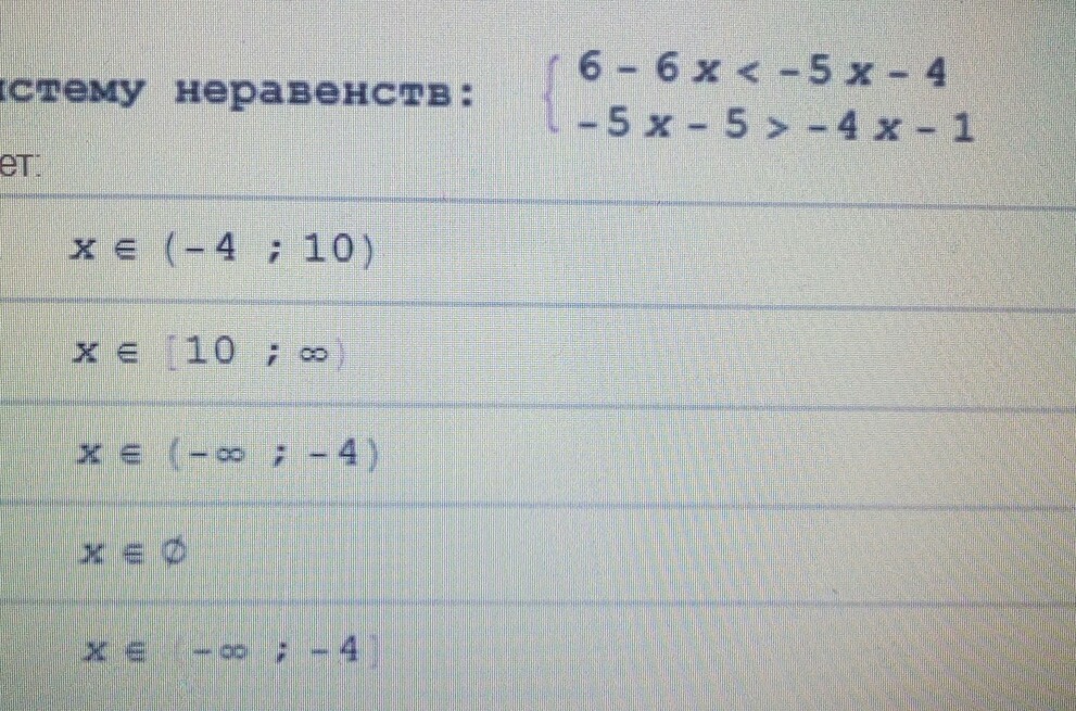 Ответ: система неравенств не имеет решений, т.е. x ∈ ∅