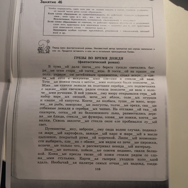 В туманной дали песчаного берега тускло светились багряные огни старинной гостинницы.В гостинной на крашенном полу,украшенном затейливым орнаментом,стоял искуссно сделанный стол с искусственными цветами в стеклянной вазе.Точенные ножки стола с заточенными концами были позолочены.Жженные спички лежали на подставке серебрянного подсвечника с зажжеными свечами,рядом стояла позолоченная ваза с золоченными ручками.В ней удивленному взору открывался старый набор варенных овощей,моченных яблок,соленных огурцов и квашенное капусты.Копченная колбаса,тушенное мясо,мороженная рыба,замороженные лангусты,толченные орехи,свинные отбивные лежали в серебрянных чашах.На отглаженной тканной скатерти,сотканной из белоснежного льна,разместились деревянные блюда,стеклянные фужеры,,оловянные ложки,костяные вилки..Сквозь затопченные стекла окон еле пробивался лунный свет.
