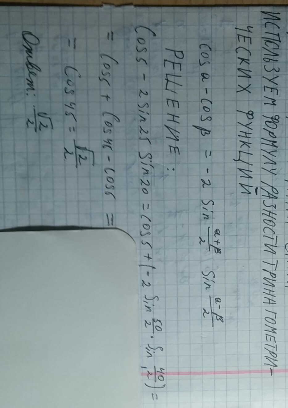 ответ:(√2/2) решение на фото