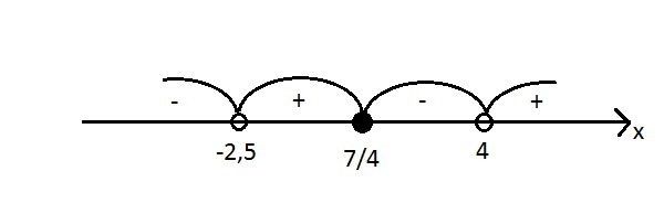 Ответ: (-2,5;7/4]∪(4;+∞).
