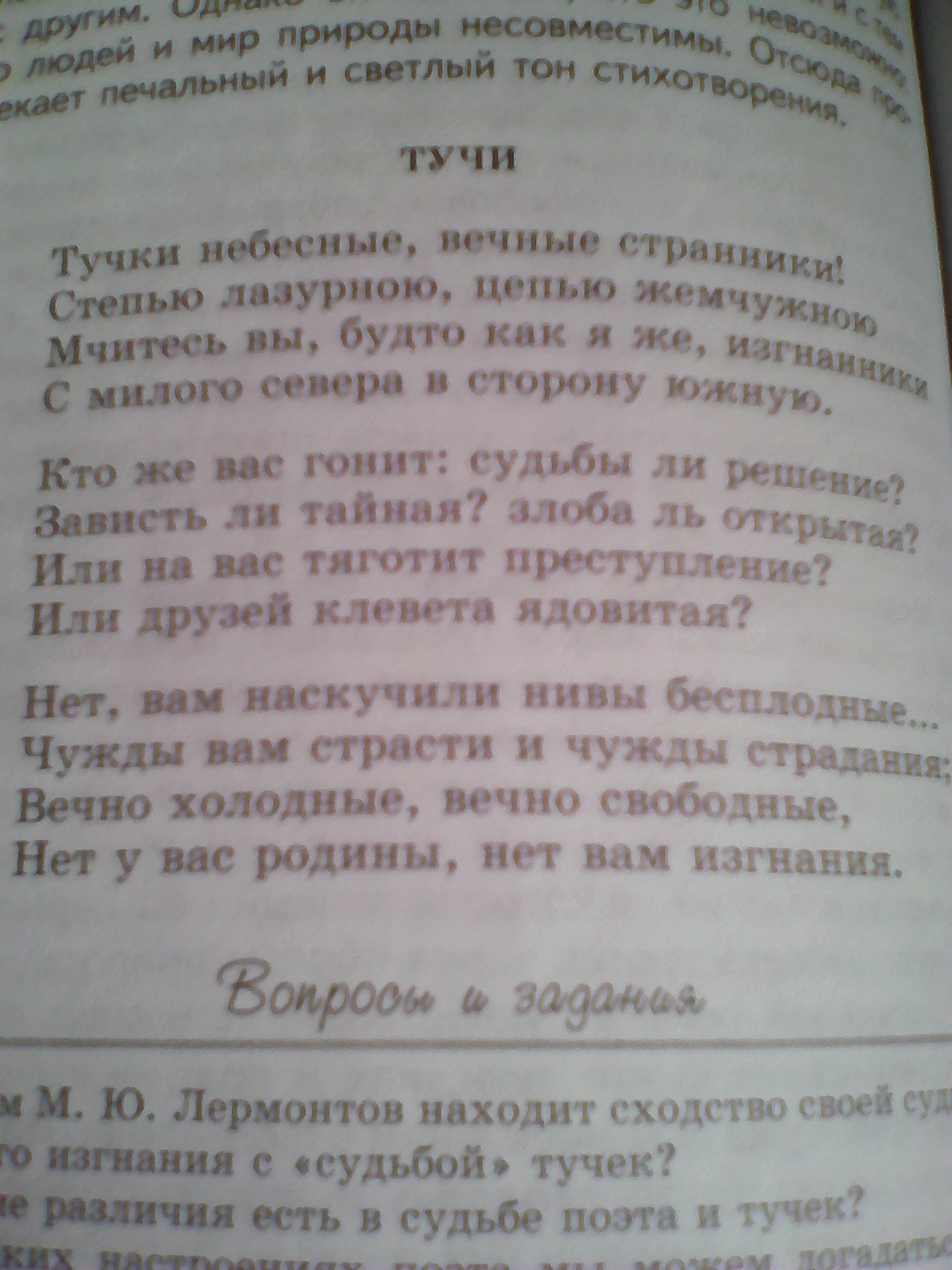 Выпишите из стиха М.Ю.Лермонтова "тучи"