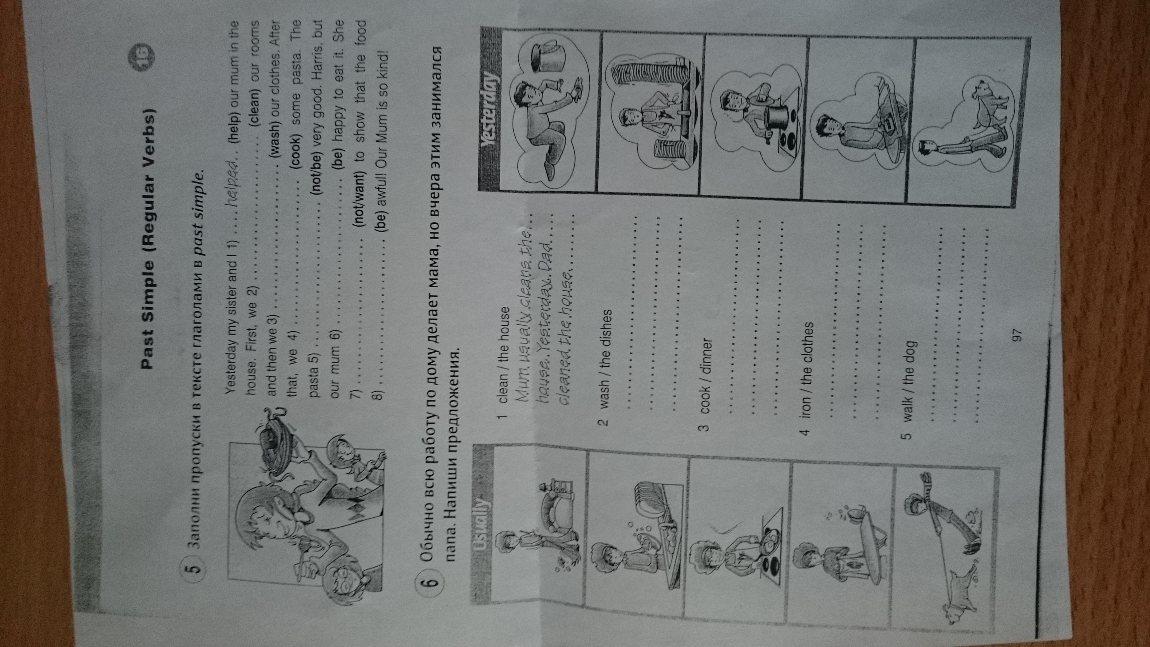 2Mum usually washes the dishes. Yesterday, dad washed the dishes.