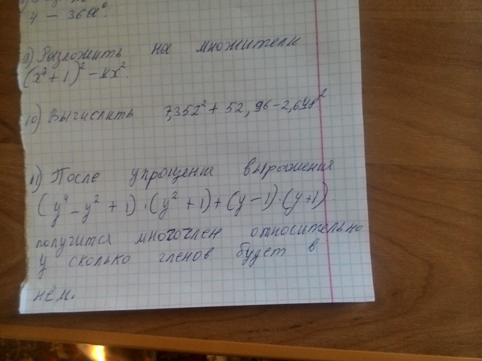 11/ (y^4-y^2+1)*(y^2+1)+(y-1)*(y+1)=y^6+y^2