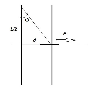 tg φ = d /(L/2) = 2*d / L = 2*8,7*10⁻²/3,2 ≈ 0,0543
