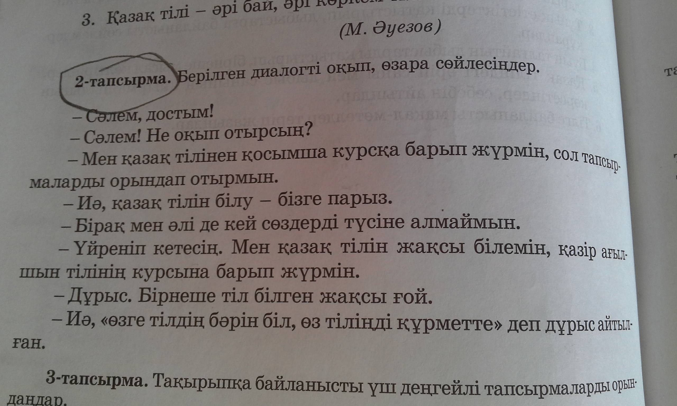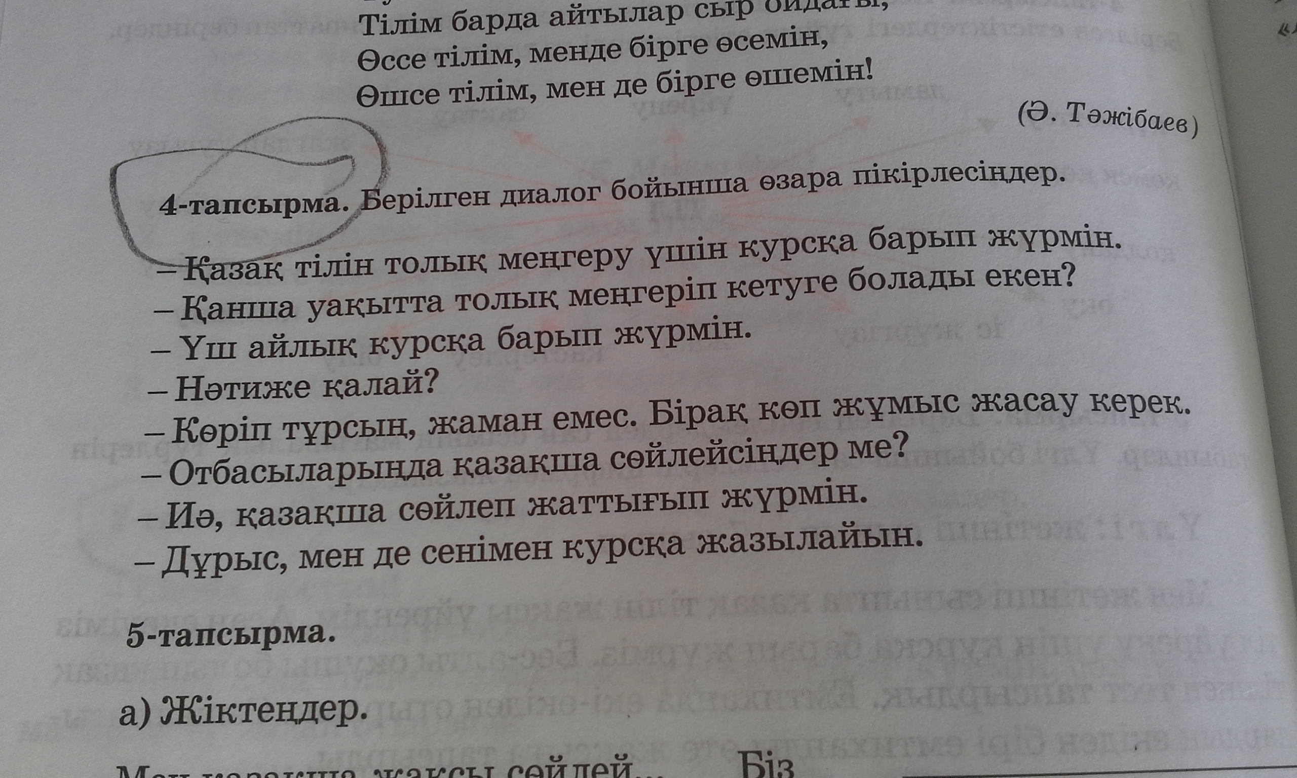 —Я хожу на дополнительные курсы казахского языка и выполняют задания что мне дали.
