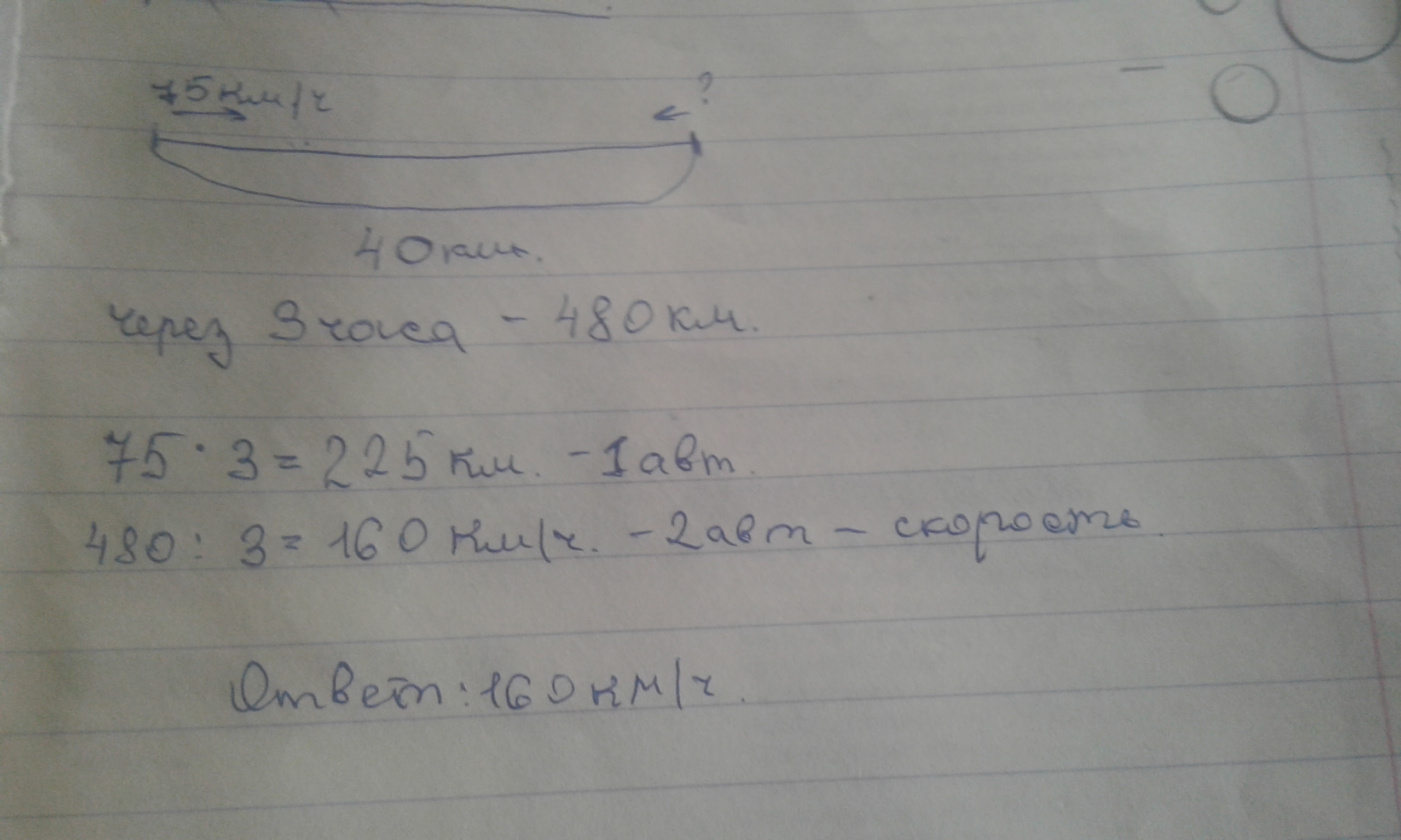 Из двух городов, расстояние между которыми 40км, выехали одновременно в противоположных направлениях два автомобиля. Скорость первого 75км/ч. Определи скорость второго автомобиля, если через 3 часа расстояние между ними было 480км.
