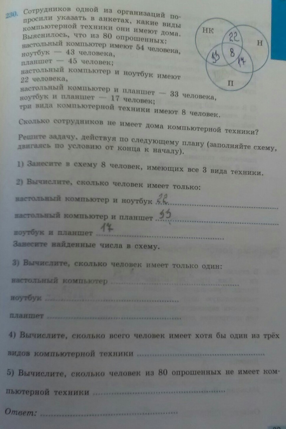 пересечение например Н и НК по условию 22 но это вся область пересечения (закрась ее попробуй) и в нее входит и пересечение всех трех техник то есть 8 , значит только н и нк будет 22-8=14 и так все остальные.