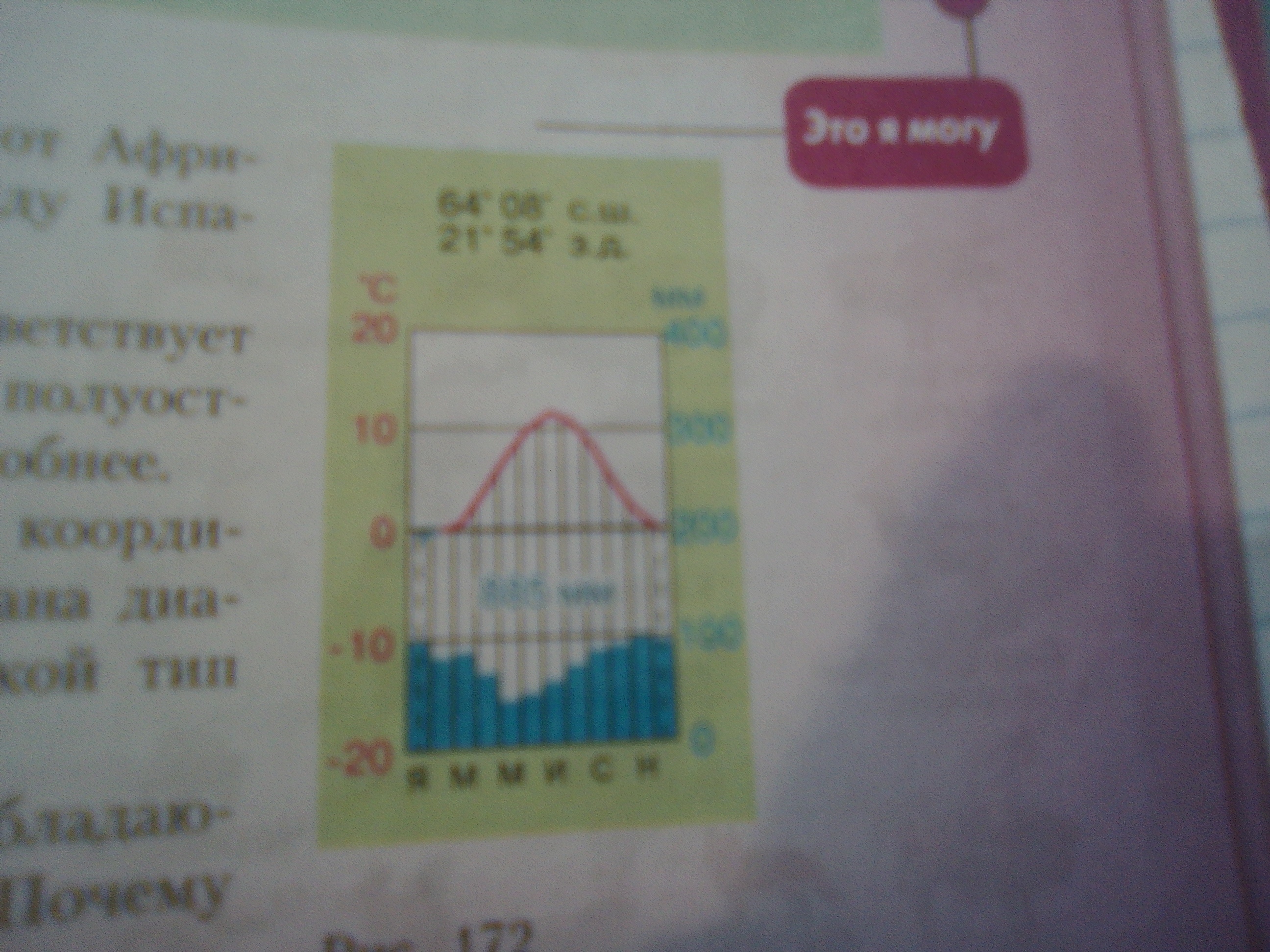 Gо климатической диаграмме и географическим координатам (рис.172) определите: а) для кого города сделана диаграмма; б) столицей какой страны он является; в) какой тип климата свойствен этой стране. (извините за качество)