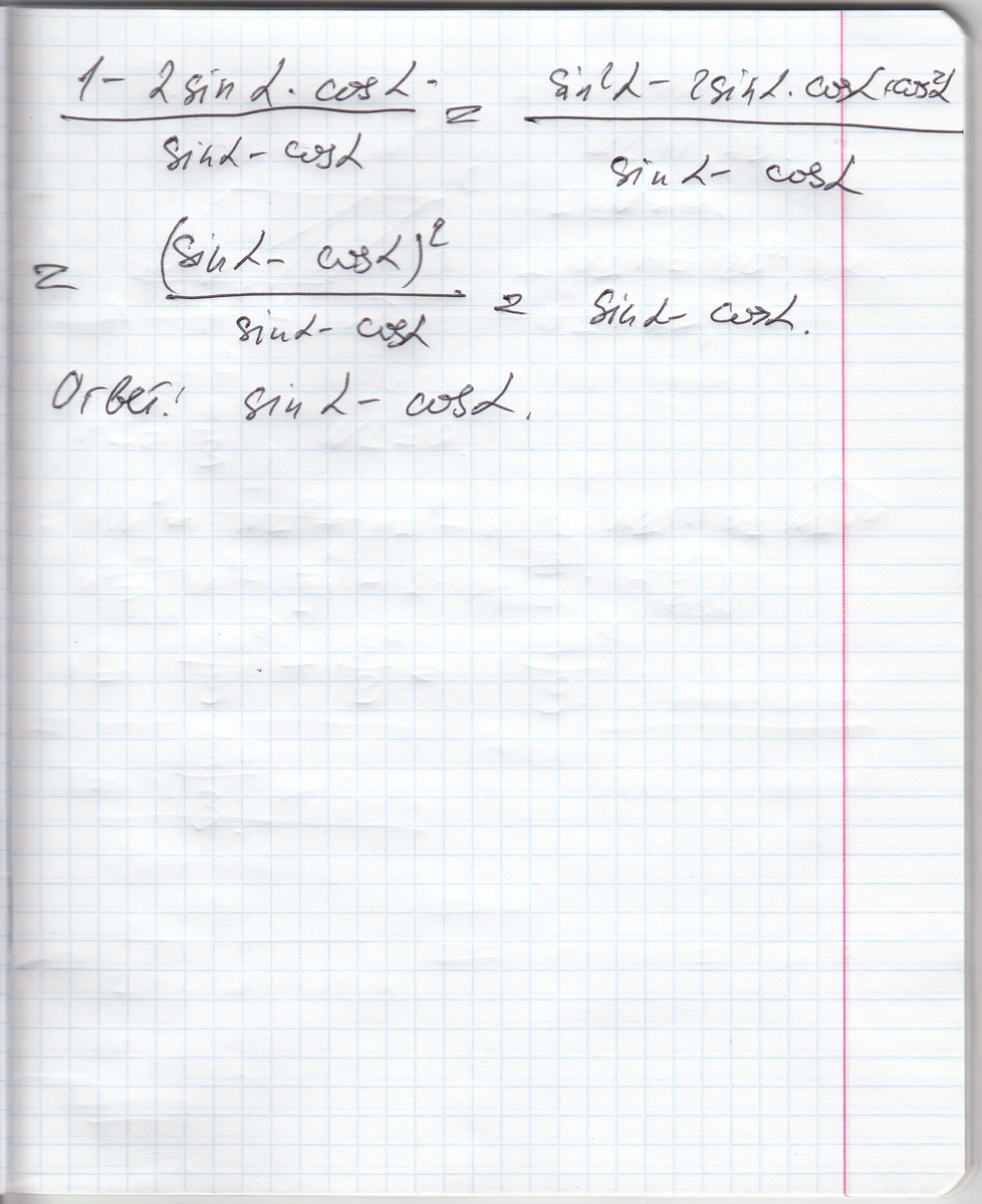 (sina - cosa)^2:(sina - cosa) = sina - cosa при sina - cosa не равном нулю.