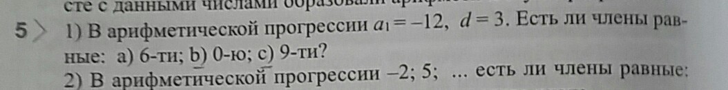 3) 9=-12+3n-3, 3n=24, n=24:3=8, значит 8-ой член последовательности равен 9