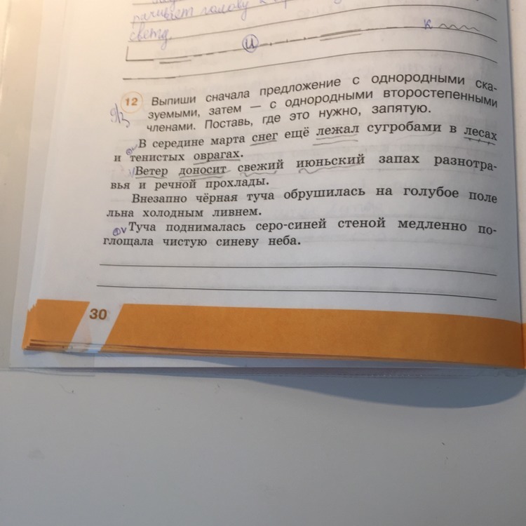 4) Внезапно черная туча обрушилась на голубое поле льна холодным ливнем