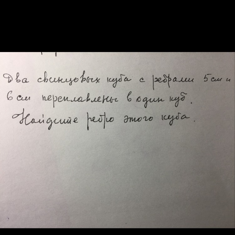 Два свинцовых куба с рёбрами 5 см и 6 см переплавлены в один куб.Найдите ребро этого куба.Помогите,пожалуйста !