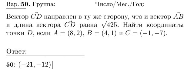 длина вектора (CD) = |CD| = V425 = V((x+1)^2 + (y+7)^2) =>