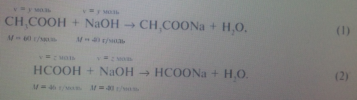 Обозначим количества веществ уксусной кислоты и муравьиной кислоты: