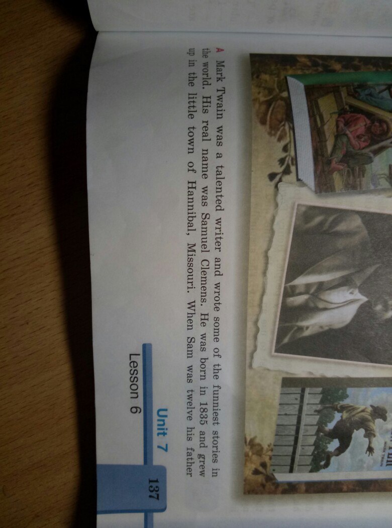 Mark Twein is a famous writer, his real name is Samuel Clemens. After his father's death (смерть) he was a difficult child, but after he helped his mum at brother's shop and write funny stories. He visited many places in USA and that helped him in writing his funny stories, that made him famous.