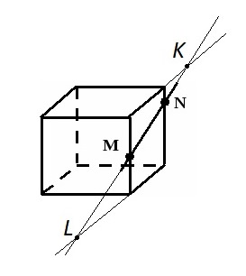 Точки М и N расположены на ребрах куба Скопируйте рисунок, отметьте и обозначьте точки, в которых прямая MN пересекает прямые, содержащие другие ребра куба