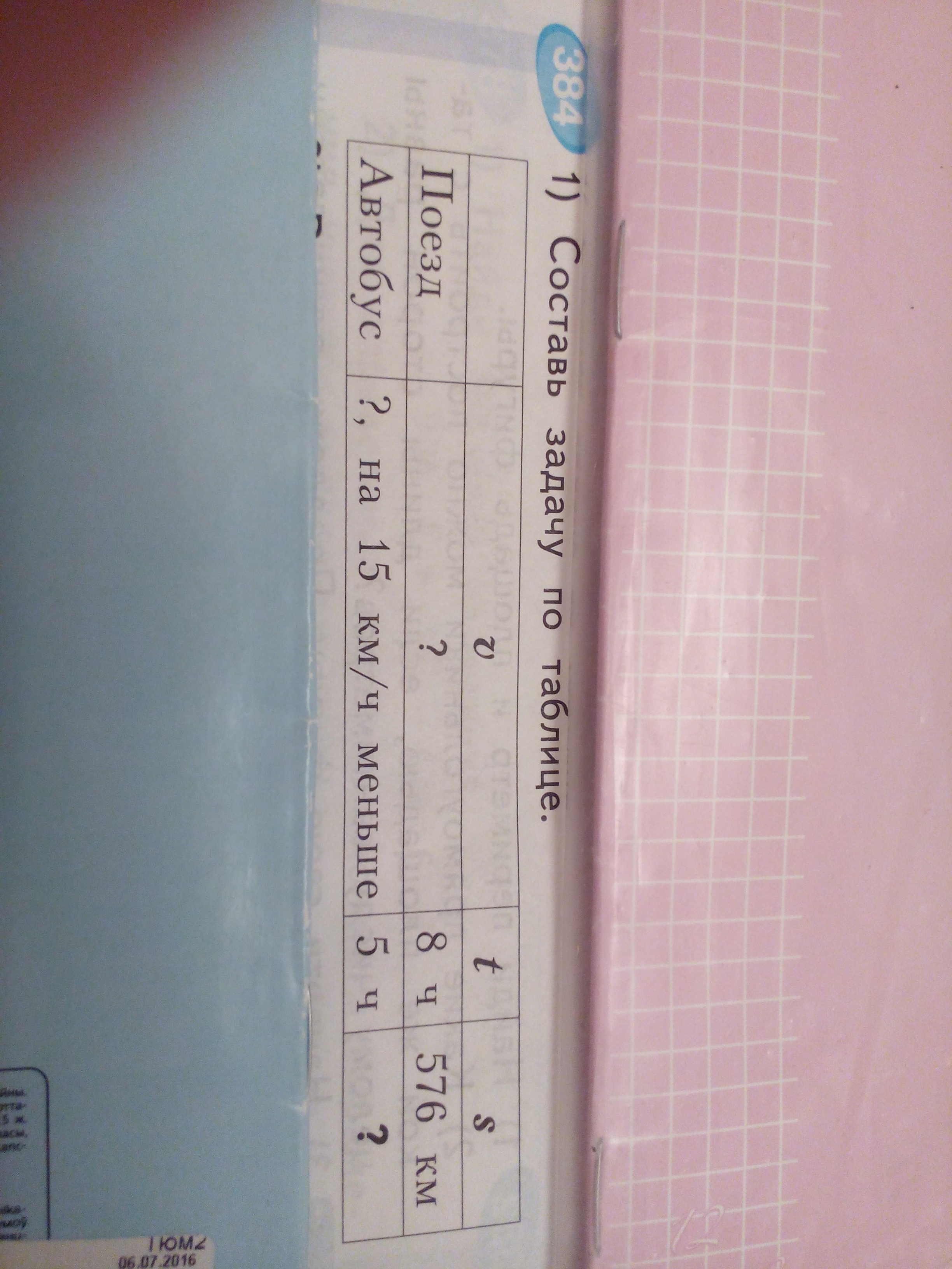 За 8 ч поезд проехал 576 км. Скорость автобуса на 15 км/ч меньше, чем скорость поезда. Какое расстояние проедет автобус за 5 ч?
