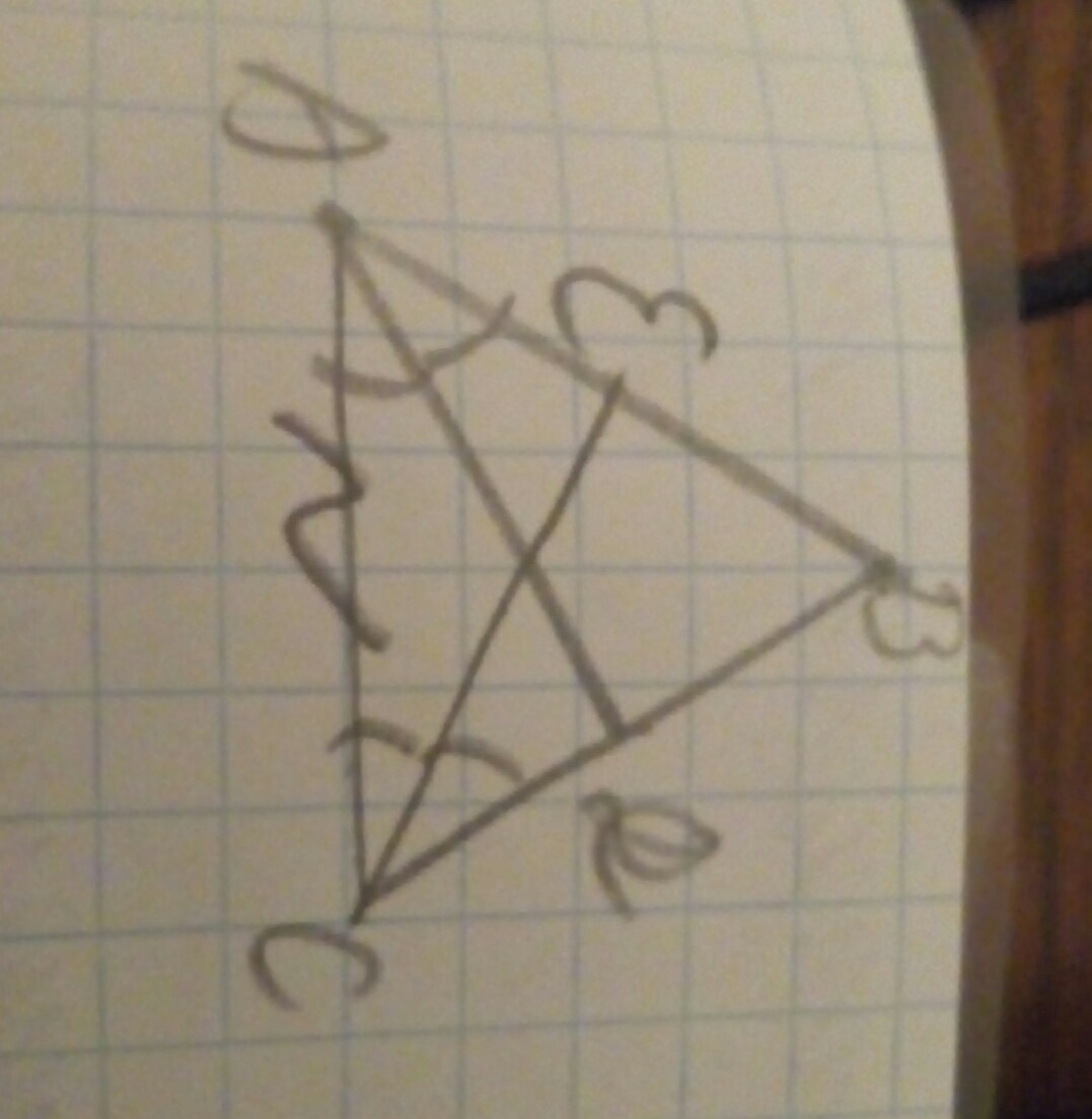 АД и СЕ- биссектриса (пардон за ошибку в слове) равнобедренного треугольника АВС с основанием АС (рисунок треугольника от упр.2 на фото)