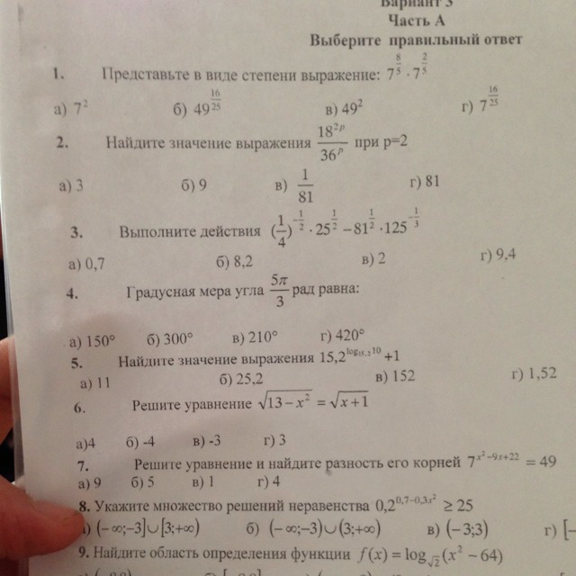 Задания по теме свойства степеней.