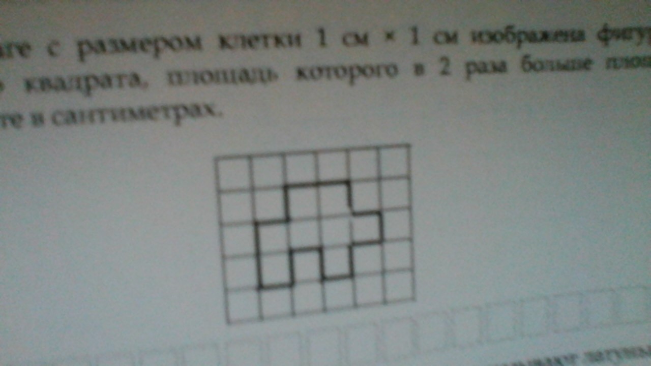 На клеточной бумаге с размером 1 см х 1 см изображена фигура. Найдите периметр квадрата, площадь которого в 2 раза больше площади данной фигуры. Ответ дайте в сантиметрах. Заранее спасибо)))