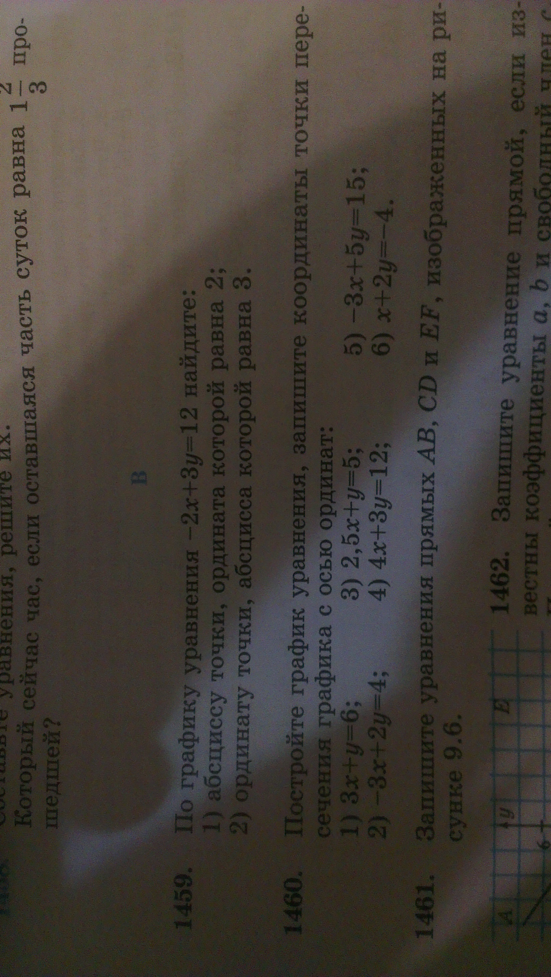в 1459номере абсцисса равна -3 а в 1460 4)точка пересечения 3;4 5)-5;3