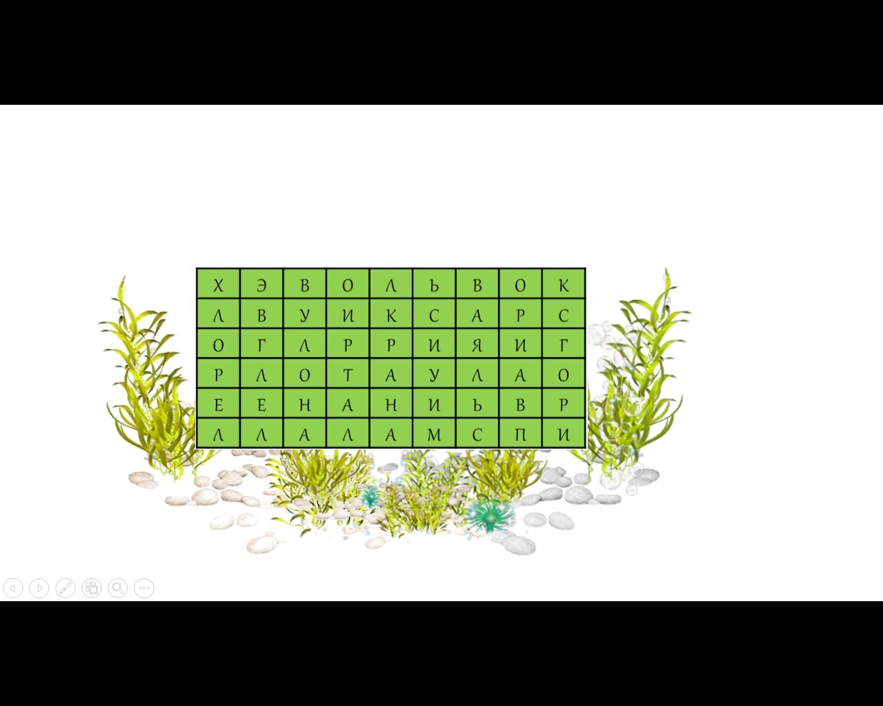 25 баллов! Разгадай филворд «Загадочный мир водорослей», подсчитай количество многоклеточных водорослей. В ответе запишите только число и названия.
