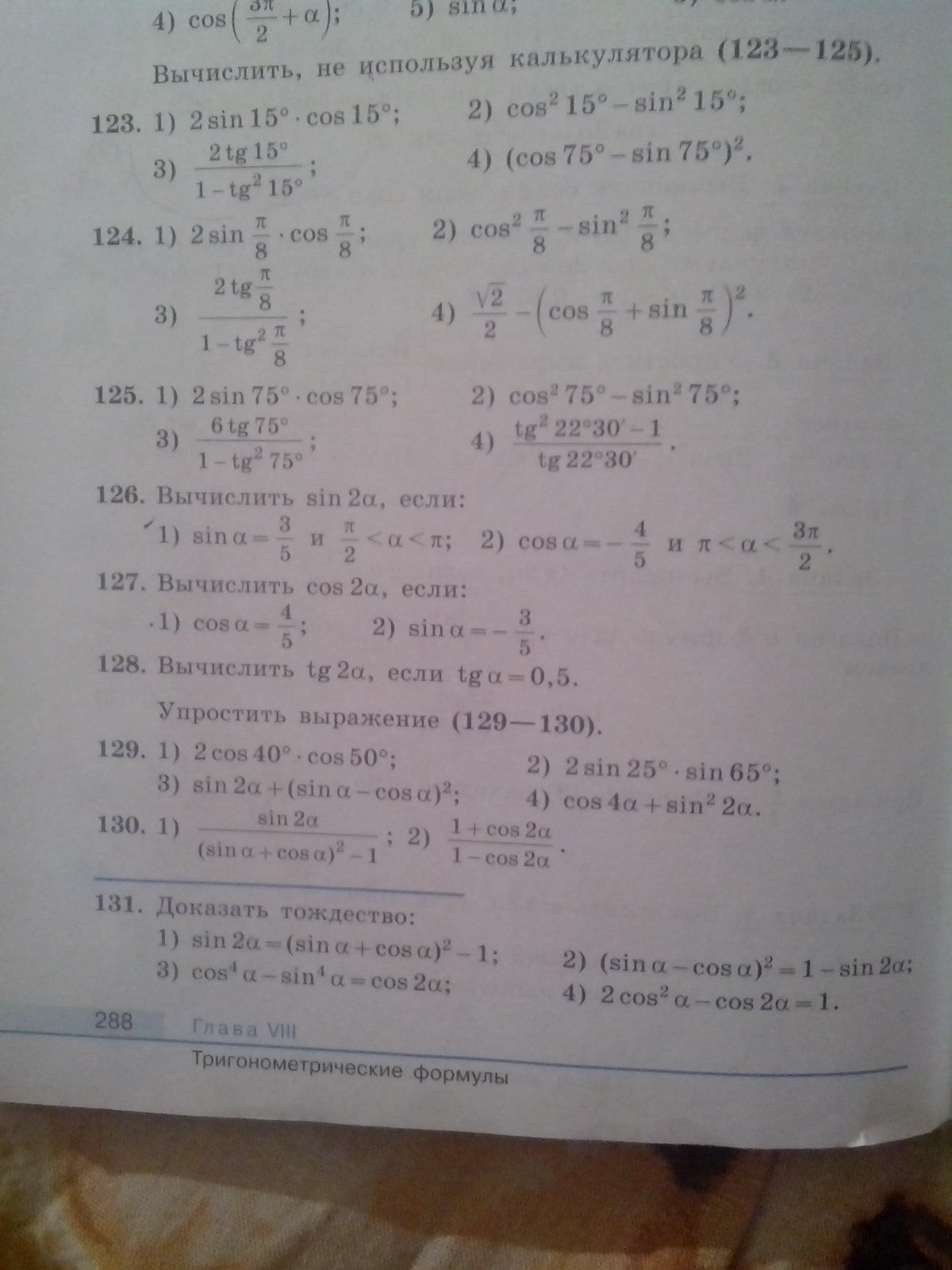 131 ![2cos ^{2}a=1+cos2a 1+cos2a-cos2a=1 <br /> 124 <br />2 <strong></strong>[tex]cos ^{2} frac{pi}{8}-sin^{2} frac{pi}{8}=cos2* frac{pi}{8}=cos frac{pi}{4}= frac{ sqrt{2} }{2} 2cos ^{2}a=1+cos2a 1+cos2a-cos2a=1 <br /> 124 <br />2 <strong></strong>[tex]cos ^{2} frac{pi}{8}-sin^{2} frac{pi}{8}=cos2* frac{pi}{8}=cos frac{pi}{4}= frac{ sqrt{2} }{2}](https://tex.z-dn.net/?f=2cos+%5E%7B2%7Da%3D1%2Bcos2a+++1%2Bcos2a-cos2a%3D1+%C2%A0%26lt%3Bbr+%2F%26gt%3B%C2%A0124%C2%A0%26lt%3Bbr+%2F%26gt%3B2%C2%A0%26lt%3Bstrong%26gt%3B%26lt%3B%2Fstrong%26gt%3B%5Btex%5Dcos+%5E%7B2%7D++frac%7Bpi%7D%7B8%7D-sin%5E%7B2%7D+frac%7Bpi%7D%7B8%7D%3Dcos2%2A+frac%7Bpi%7D%7B8%7D%3Dcos+frac%7Bpi%7D%7B4%7D%3D+frac%7B+sqrt%7B2%7D+%7D%7B2%7D++++)