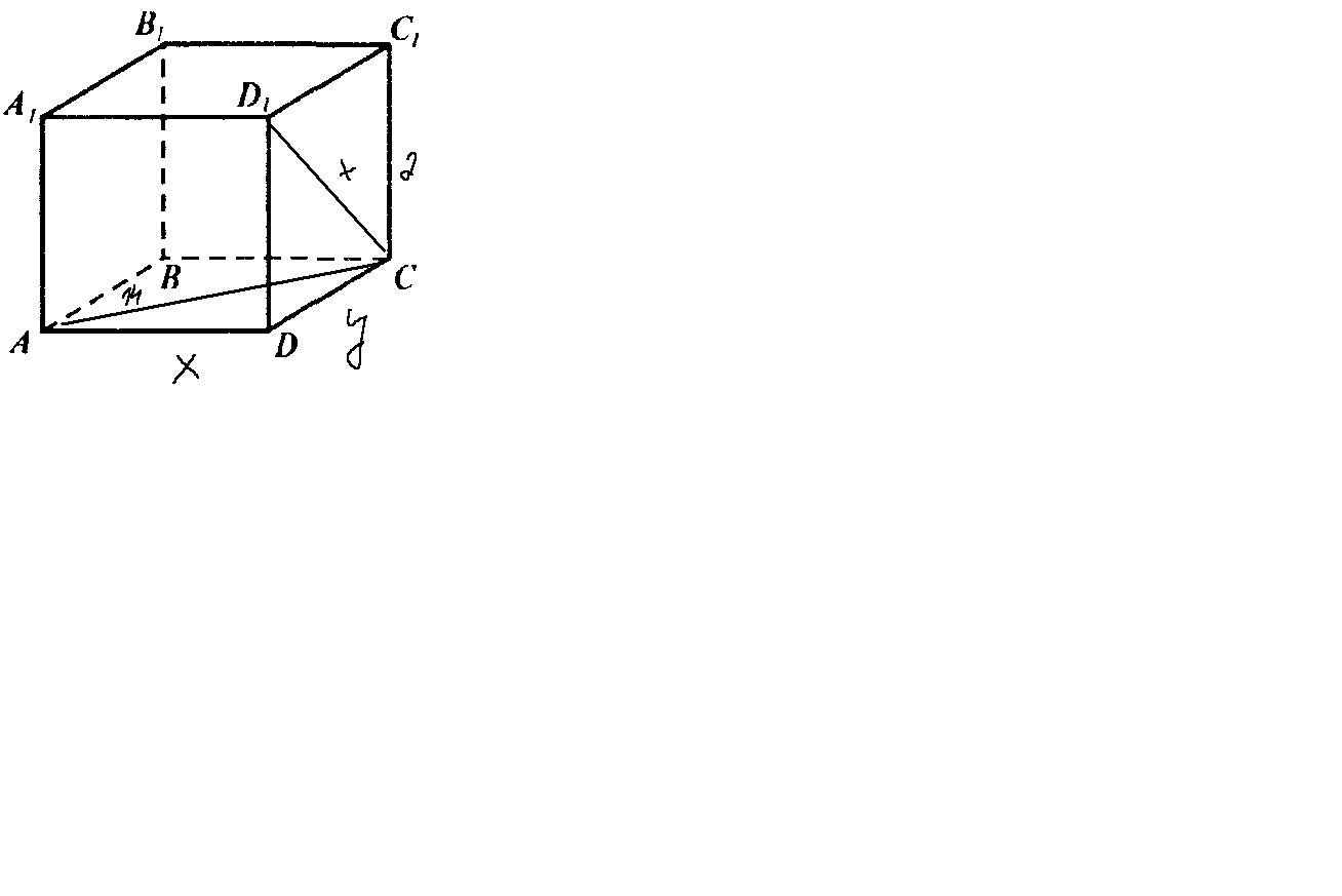так как диагональ меньшей грани равна ребру основания возьмем ребро за х тогда диагональ тоже х