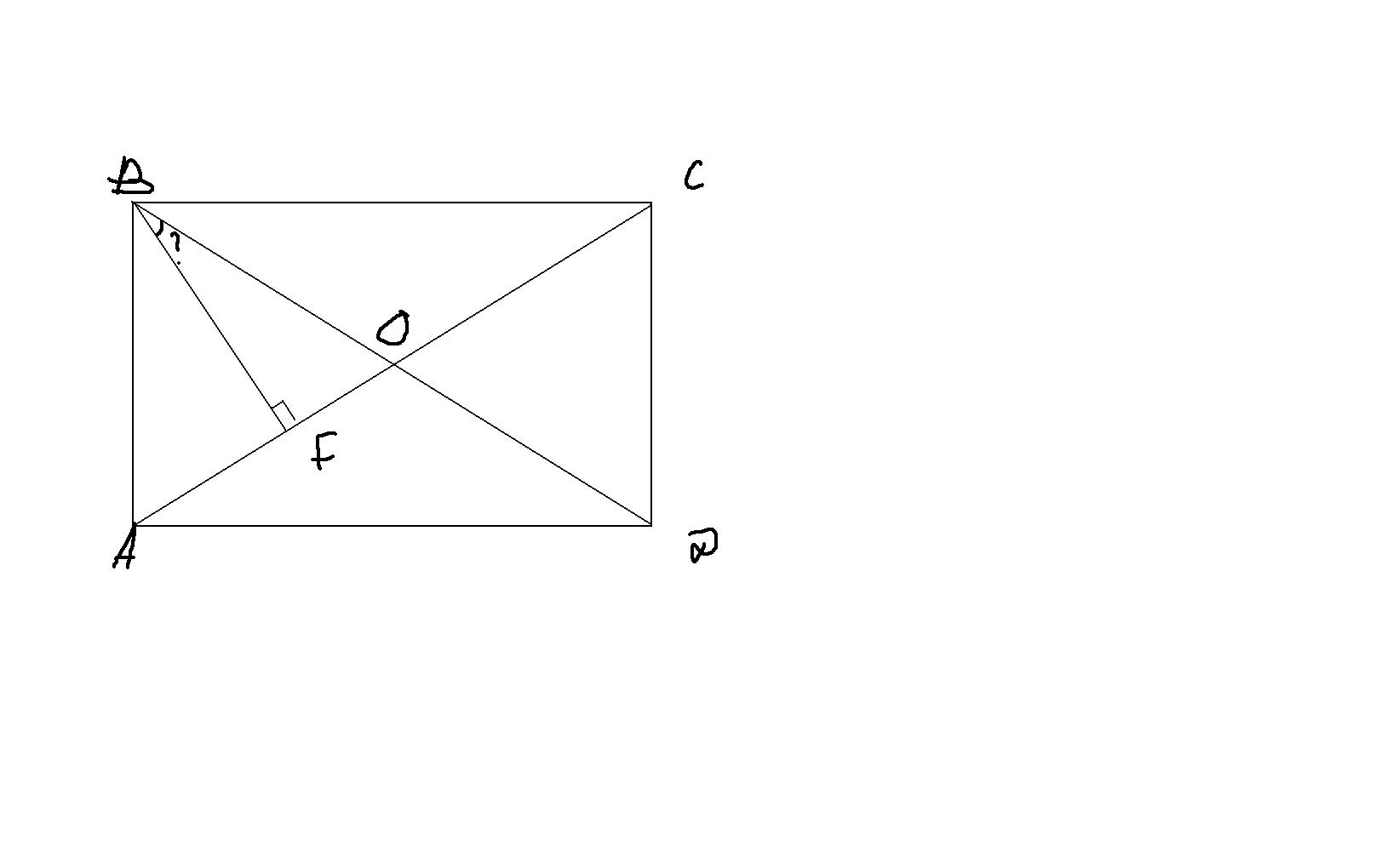 так как угол BFC 90 гр значит угол BCF =180 -(50+90)=40 гр то есть он равен углу BFA . вспомним что диагонали равны значит треугольник ВОС равнобедренный! то есть наш искомый угол равен 50-40 =10 гр
