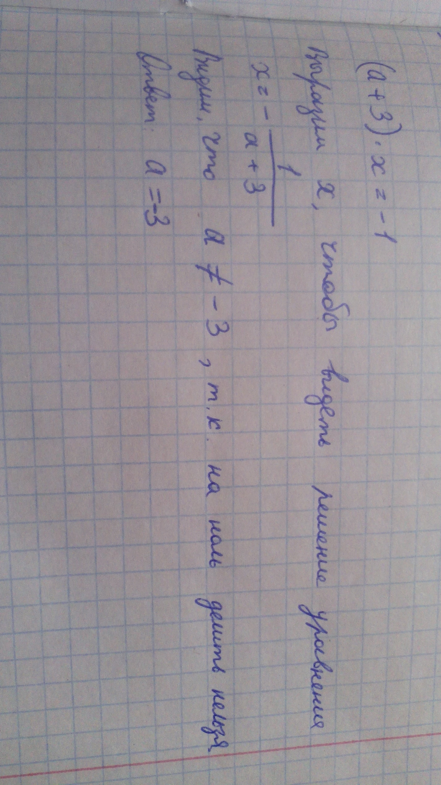 В данном уравнении, параметр А не может быть равен -3.