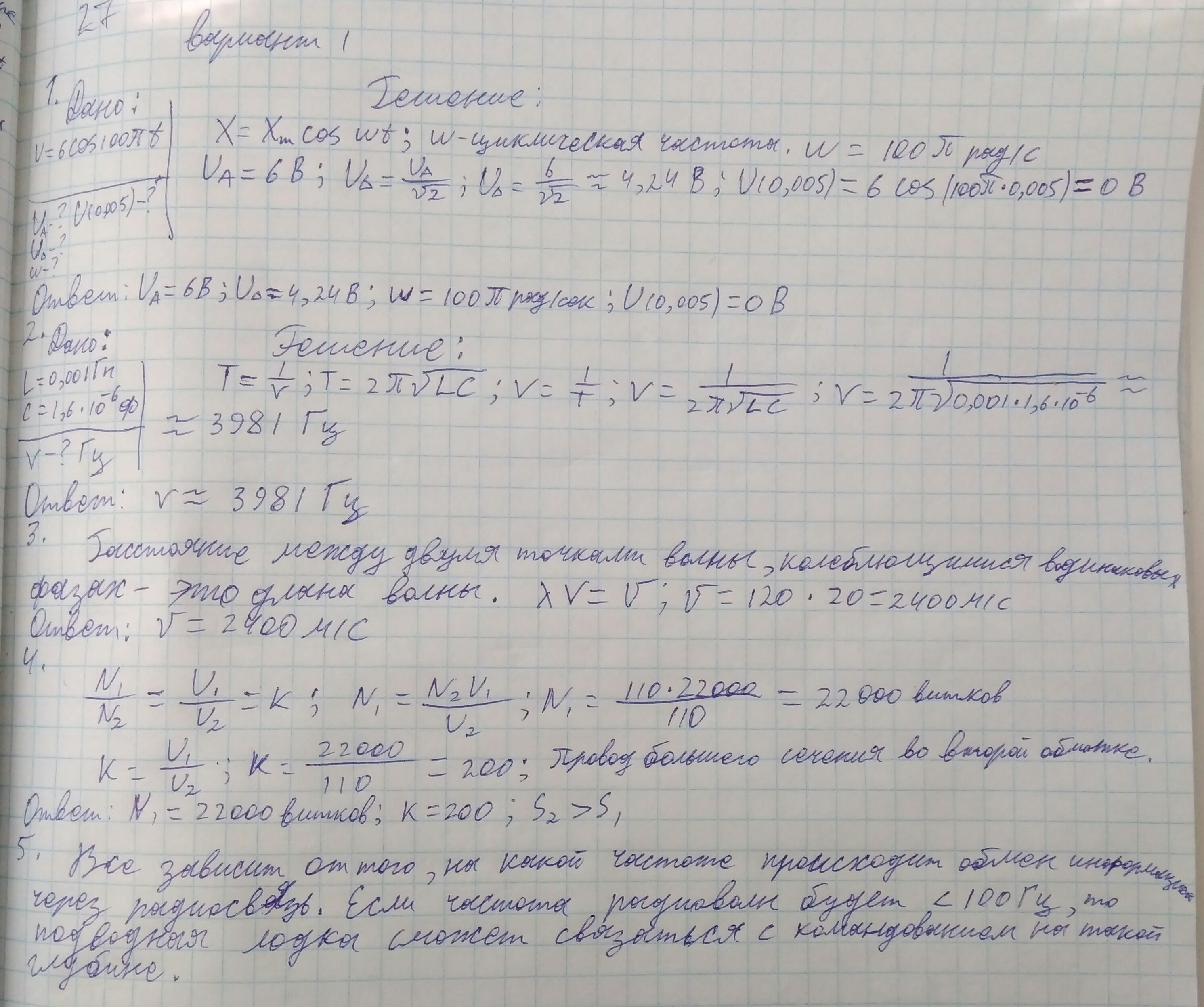 2) RL=w*L w=RL/L=12,56/0,04=314 Ом