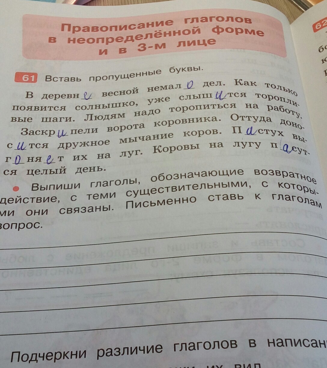 Выпиши глаголы обозначающие возвратное действие с теми существительными с которыми они свящаны Письменно ставь к глаголам вопрос