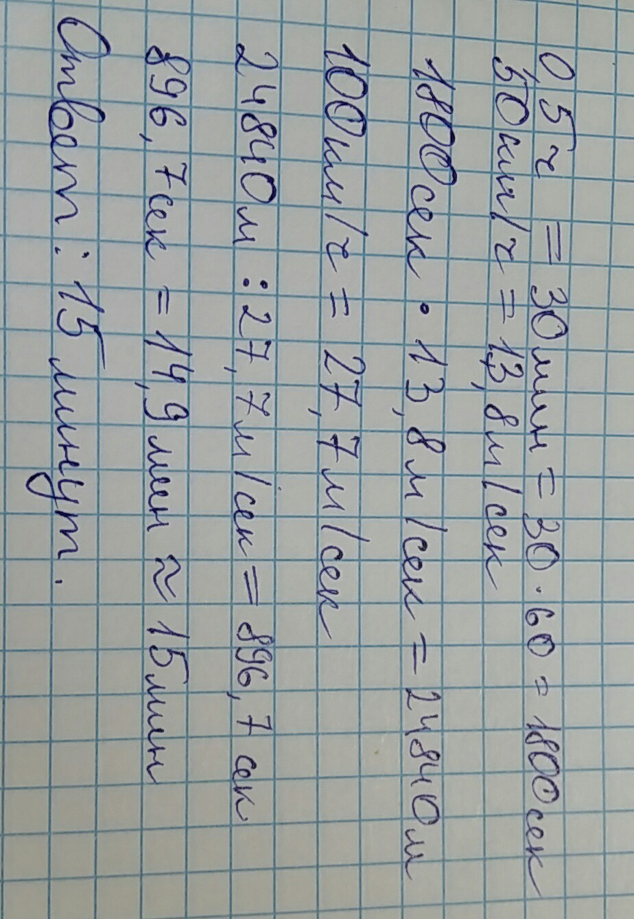 Некоторое расстояние ласточка пролетела за 0,5 ч со скоростью 50 км/ч. За сколько минут про-летит то же расстояние стриж, если будет лететь со скоростью 100 км/ч?