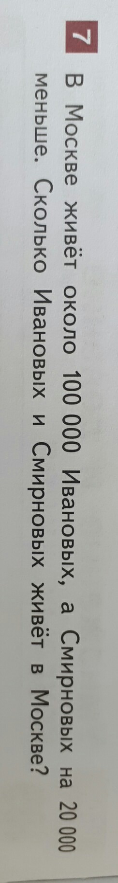 Ответ: 180000 Ивановых и Смерновых живут в Москве