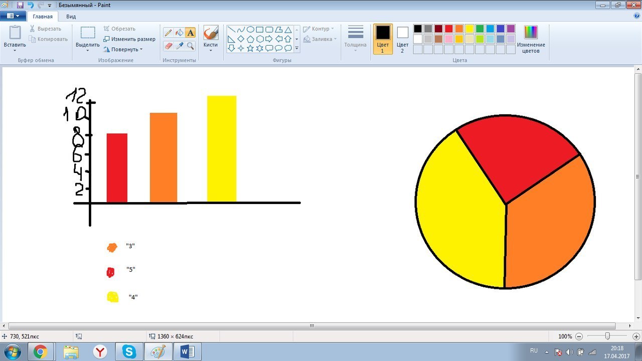 В 4б классе 30человек.По итогам года 5 по математике получили 8учеников отметку 4 12учеников а остальные отметку 3.Построй столбчатую и круговою диаграммы успеваемости по математике 4б класса.