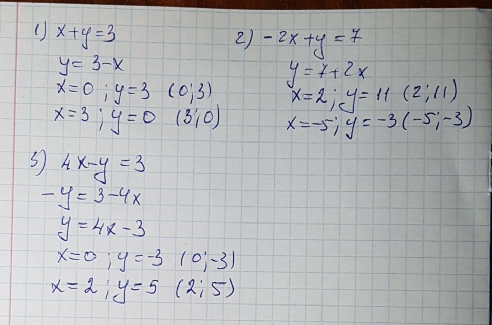 Выразите переменную у через переменную х, найдите два каких-нибудь решения уровнения: