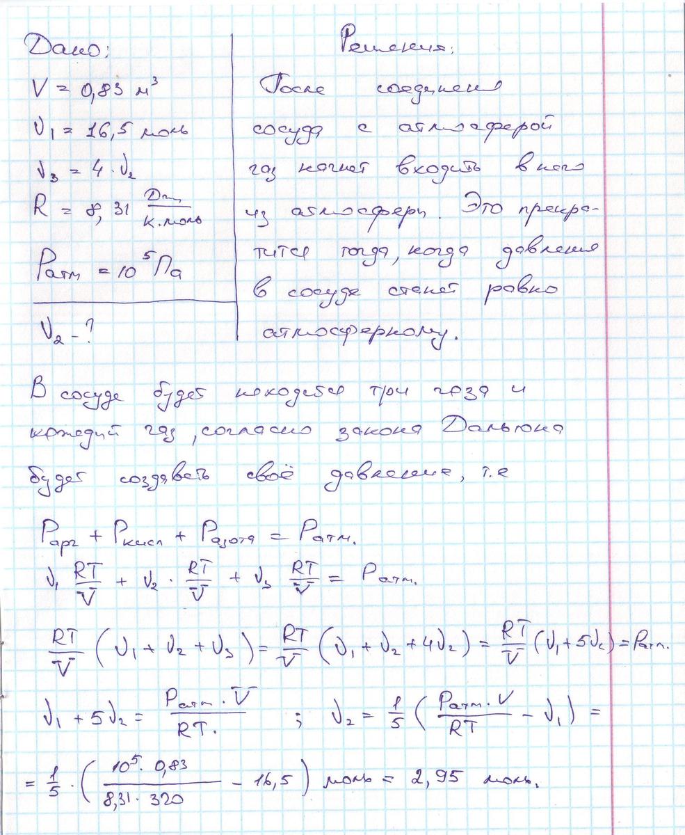 v2=(p-p1)V/5RT=(10^5-0.529*10^5)*0.83/5*8.31*320=2.94 моль