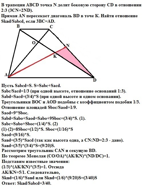 Sand=(3/5)*Sacd (так как высота одна, а CN:ND=2:3 - дано).