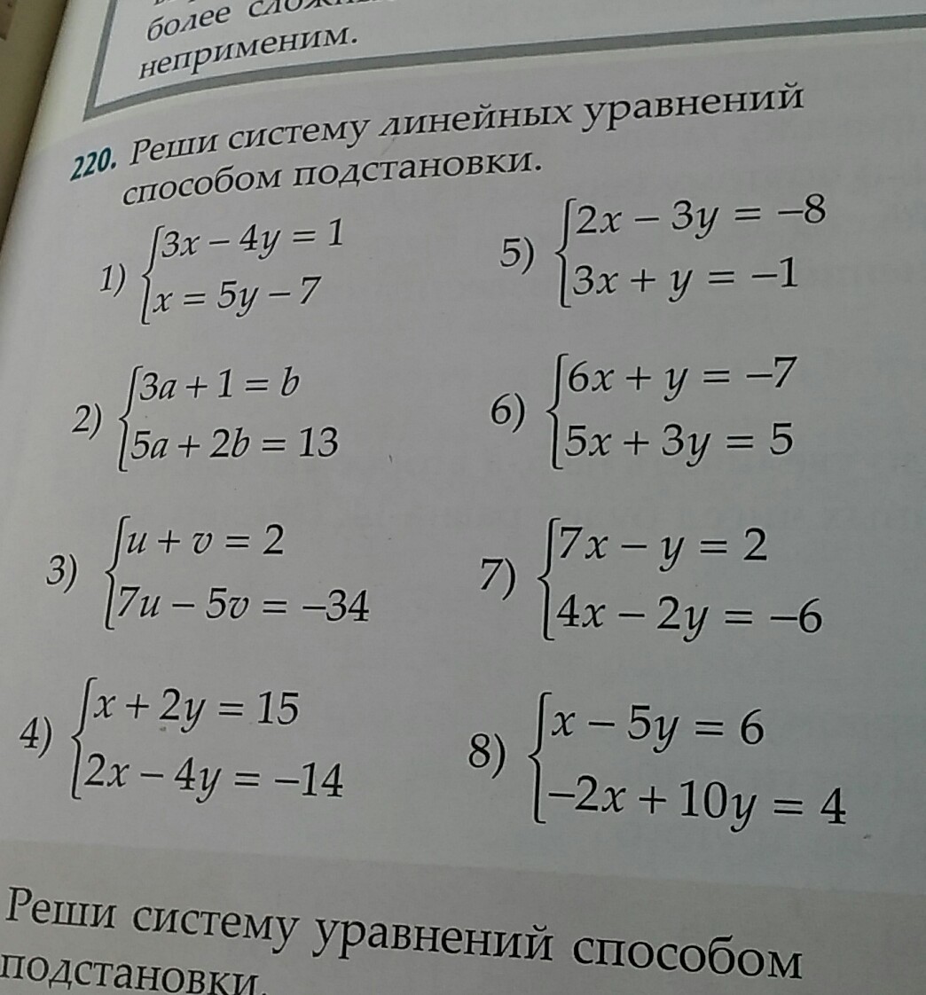 Помогите решение линейных уравнений с двумя неизвестными способом подстановки