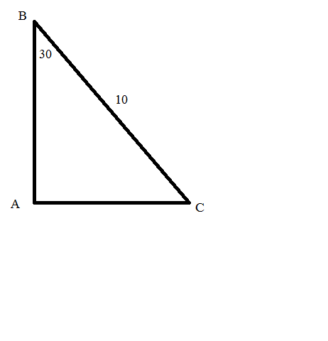 В прямоугольном треугольнике против угла в 30 градусов лежит катет равный половине гипотенузы: АС = ВС : 2 = 10 : 2 = 5 (см.вложение)